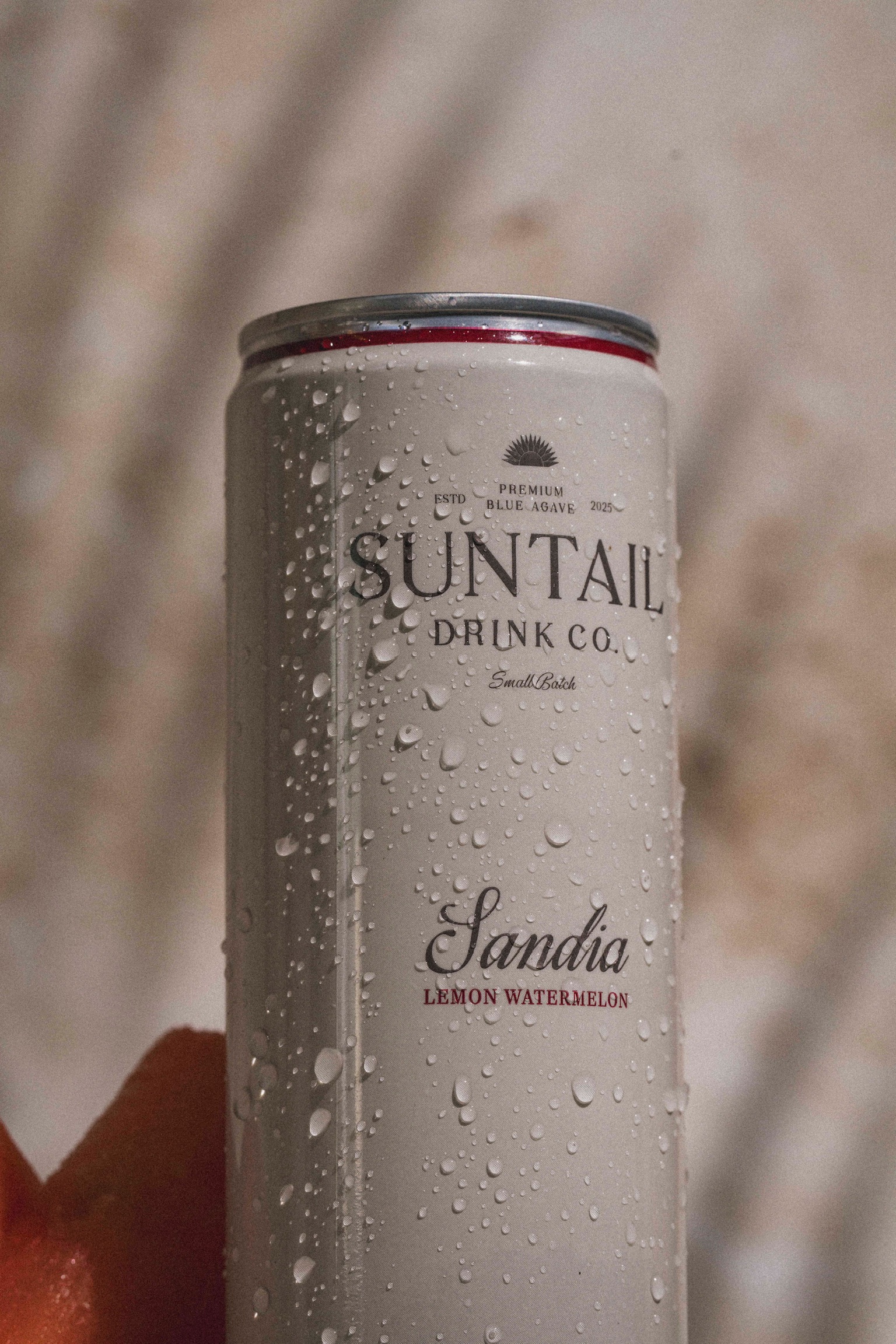 Iconography & Naming: The name "Suntail" was meant to convey sun-drenched momentum. We translated this into the brand’s core icon: a stylized sunburst that is also an agave plant, the source of the product's premium tequila. This created a simple, powerful visual story. To build a unique brand world, we established a proprietary naming convention for the flavors. Instead of generic names, we chose "Sandia" and "Citron"—an elegant, ownable language that, like ordering a "Grande" at Starbucks, signals you're part of the brand's world.